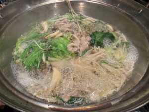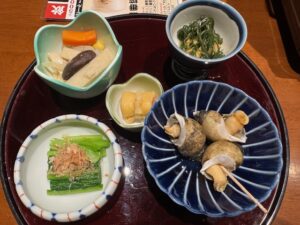 突き出しの5品から始まり、美味しいお刺身・リクエストしていたスープでいただくタレ無しの豚しゃぶしゃぶ・カレー味の鶏唐揚げ・グラタン・リクエストしていたお好み焼き(これが今のところ新潟県で一番おいしいお好み焼きだと思ってます)・漬物に〆のうどん!飲兵衛が多いので飲み放題は逆に申し訳ないくらい飲みました。大大満足で経理担当もこれで7,000円は安いですよね!と喜んでました。量が多過ぎたので5,000円~6,000円でいいのかも?いや多分五泉出身の店主で私の知人もよく利用するので、かなりサービスしてくれたのだと思います