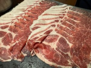 今回:介護施設の忘年会兼お別れの会(5人)にて利用、わがまま注文で出汁ねぎ豚しゃぶしゃぶとお好み焼きは必ず出してもらうそして飲み放題付きでひとり7,000円で予約してました。