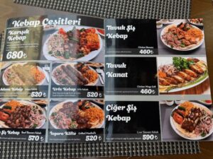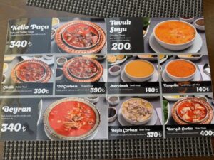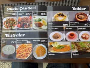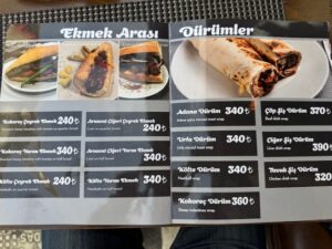 買った品:バナナオムレット・ピスタチオのバクラバ・椎茸みたいに見える中にピーナッツクリームが入ったクッキー菓子。どれがいくらだか覚えてないが合計90リラ=340円