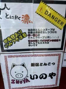 あれっ⁈店名が漢字入れた「猪や」から平仮名の「いのや」に変わった⁇それと土日太麺、平日細麺の制度が基本は太麺、替玉は細麺と嬉しい変更されていた。これで混む土日に行かなくても好みの太麺がいただける~。極みとんこつは味玉半分x2・削ぎ切りネギ・紅生姜・バーナーで炙ったバラチャーシュー1枚、特注ツルツル太麺、脂浮く圧倒的な濃厚豚骨スープ。太麺はあっという間に無くなるのでほとんどの人が替玉(細麺)を追加してた。太麺で通したいなら大盛を頼めばいいのかな?やっぱ豚骨では新潟1旨いと思う