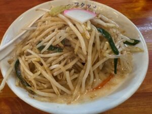 久しぶりにこちらにお邪魔したが、土曜だけど勢い衰えず人気。塩分を欲するスポーツした後だったが、やはり味濃い、ややしょっぱい。たっぷりの野菜(もやし)で腹一杯になった