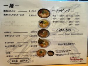 今回も食べた品:濃厚にぼしそば1,100円