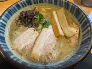 行ったのは3月中旬で、期間限定(売り切れ御免)の盛田のたまり醤油使用した「煮干しブラック」狙いだったのですが、12時ちょっと過ぎで残念ながら売り切れ、ガーン!!気を取り直していつものつけ麺と思ったが寒かったのでスープありの濃厚煮干しで。濃厚煮干しはほぼつけめんダレの様に濃い。「とみ田」「道」を彷彿させる絶品濃厚甘い魚介ドロドロ豚骨スープ。あ~おいしかった。でも煮干しブラック食べてみたかった(投稿される頃には多分もう終わってます)。4月1日より値上げ書いてあったからこの投稿される頃には値上がってます。