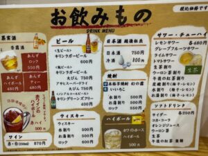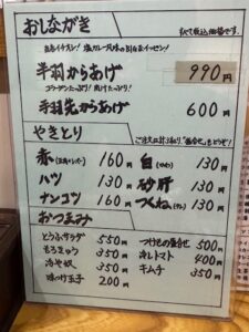 今回食べた品:もも焼き700円・とり刺し700円 アルコール各種