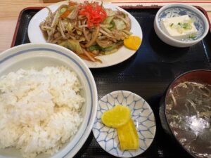訪問が木曜だったのでサービスセットもあったが、、炒め物、野菜炒めが旨いと知人から聞いてたので肉野菜炒め定食を。なるほど辛子が添えられバラ肉が入って醤油とソースの中間的ななんとも言えない旨さのあるバシャバシャのタレだがシャキシャキの野菜類といったリピしたくなる旨さ。ただ木曜ランチタイムは常に満席でサービスセットを頼む人が90%な感じ