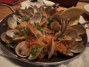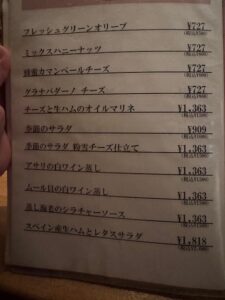 行こうと歩いた星ノフル夜ニが残念ながら定休日でこちらに。超久しぶりに2次会利用させてもらった。コロナ禍では昼に担々麺を提供していてしばらくは夜にも担々麺が食べられたみたいだが、今はその提供は無かった。本日のグラスワインだったピノグリージョ(1,000~1,500円これは不明)を飲みながらスペイン産生ハムとレタスサラダ(2,000円)とアサリのパスタパエリア(2,000円)を頂いた。前はお洒落な空間だった気がするが、コロナを経てなんとなく店内は雑多な感じが、、