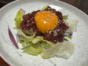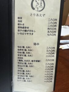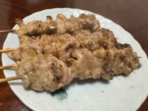 シニアサッカーのメンバー4人でお邪魔した。豚バラ1本380円・鶏ももやせせり1本280円・皮180円など。まぁまずまずの量が串に刺さってるけど安くはない、馬肉ユッケ880円がハマって3つも注文。ただ金曜の開店直ぐなのにハツ・ハツ元・砂肝など内臓系が全て品切れ、、それが楽しみに行ったのに