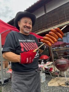 新潟バーベキュー協会会長、日本バーベキュー協会公認上級インストラクターなどの資格を持つパンチョ須田さんの出張BBQ。自宅やイベントでお呼びできます。この日の会費:BBQ代5,000円+アルコール・飲み物(スロウプハウスにて)