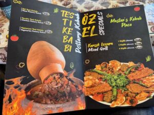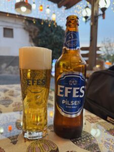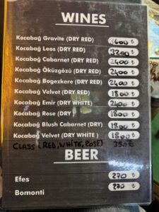 食べた品:Efes Beer270リラ・Pottery Kebab750リラ・赤ワイングラス350リラ、合計1,370リラ=4,985円