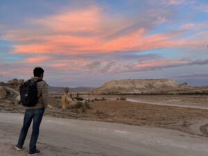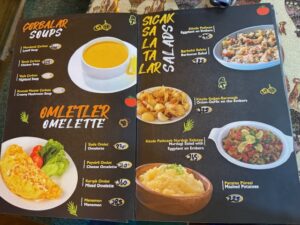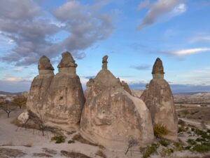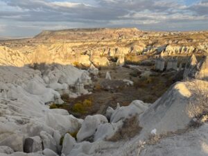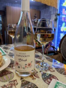 食べた品:ビールBOMONTI270リラ&EFES270リラ・グリーンサラダ315リラ・壺チキンケバブ690リラ・KOCABAG BLUSHというカッパドキアロゼワイン1本1,800リラ・ラムチョップ950リラ・水35リラ・赤ワイングラス360リラx3杯、合計2人前5380リラ=19,368円なかなかのお値段だが満足度も高かった。以下はカッパドキア夕暮れバギーツアーの写真