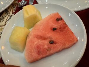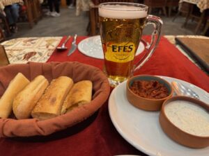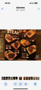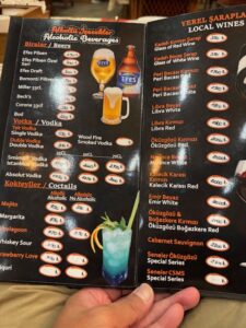 食べた品:Efes Draft 300リラ・赤ワイングラス350リラ・リブアイステーキ400g1,100リラ 合計1,750リラ=6,300円