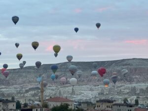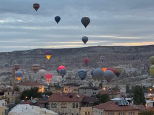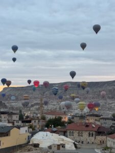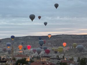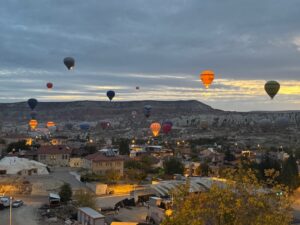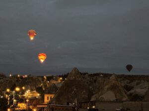 宿のおじさんに聞いてGoogle評価もすこぶる高いので行ってみた。先ず辛~いサルサソースとヨーグルトソースとまぁまぁのパン、肝心のステーキ、、エッ??て感じ、軽い炭味は良いがこれがリブアイ??硬いし筋は異常に多いし、、トマトサラダにフルーツのサービスはいいが、そんなもん要らないからいい肉を提供して欲しかった。こんなに硬い肉久々、、値段も値段だし結構期待してたからなおさらショック、隣に居た韓国人も半分以上残していた、騙されるな東洋人、、会計時にオーナー的な人にアレはリブアイじゃないでしょ!と強めに言ったら黙って、、デザートをサービスすると言い出した、違うと思う。気を取り直して以下の写真はカッパドキアと言ったら気球!!泊まった宿から早朝に飛び立つ気球はやはり素晴らしかった