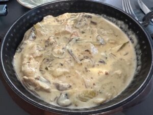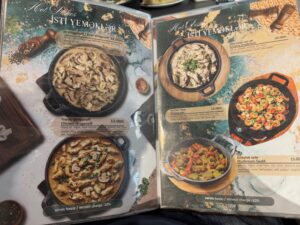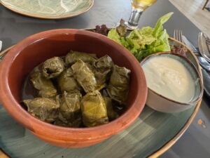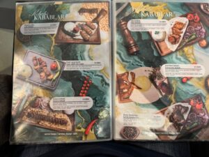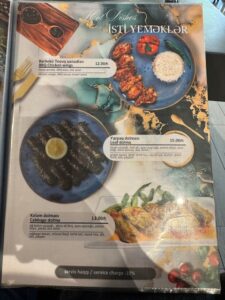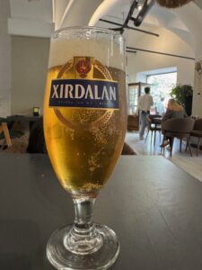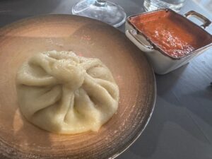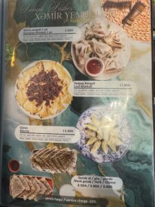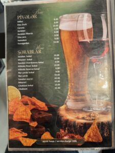 食べた品:Xirdalanドラフトビール7.00・Leaf dolma 15.00・赤ワイングラスNar sarabi bokal 9.00・Georgian khinkali 1ピース1.50・Chicken stroganoff 13.00 合計にチップ10%で52.25マナト=4,800円