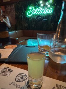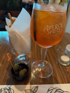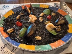 バクー最終日、ハロウィンナイトで金曜日という事もあって街は賑やかでこの店(バクーで大人気のイタリアンレストラン)も予約でいっぱい、一人で入口の席でもOKという事でなんとか潜り込めた。先ずは安定のアペロールスピリッツ美味しい、嬉しい絶品オリーブとグリッシーニが付いてきた。地元の白ワインもまずまず、オニオンスープは熱々にパイで蓋をされたドロッとしたオニオンスープ、ローズマリー含めた香草の香り高く美味しい。シーフードブラックリゾット、魚介類とイカ墨が効いた最高のリゾットだった、ムール貝に小海老・イカその他の貝、もちろんお歯黒さんに、、店員さんも最初はひとりで入口の席だし忙しくてなかなか注文も来てくれなかったが、英語も話せて素敵な店員さんで色々旅の事を話して仲良くなり、最後にレモンチェッロをサービスでくれた。最後の夜は贅沢にだったが値段の価値以上の満足度があった。これだけ飲み食いして日本より全然安いと思う。