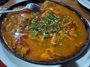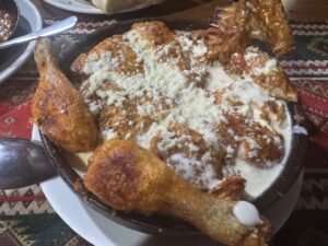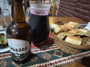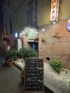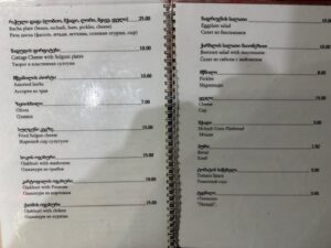 その日ツアーで帰り道が一緒の唯一の日本人の方と夕食一緒した。現金のみ、先ずメニューを見て選んで会計の所でおばちゃんがそろばんで計算した会計をその場で払う、ローカル的な感じは強かったが、外国観光者のたまり場でもあって、隣のテーブル含めてみんな仲良く会話がはずんだ。シュクメルリはデカい!ちとしょっぱい!Ostriは前日に食べたものと違ってスパイシーでなかなか良かった。やはり一人じゃないとシェアしながら色々食べれていい。