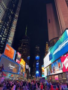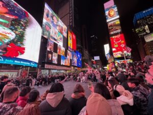 ニューヨークでは世界中の全ての一流の食べ物が食べられるがここまで日本食をあまり食べていなかったので、選択は日本食。NYに大戸屋は3店舗出店中。平日の夜で満席、店員さんは日本語は話せず、日本の居酒屋化している。カツ重は普通においしい日本のカツ丼、七味唐辛子を訊いたら持って来てくれた。米は凄くおいしい訳では無いが日本米使用。大戸屋なのに凄く高いが、NYでは安価な方だからこんなに満席、、NYのタイムズスクエア近辺も相変わらず活気があり、人種のるつぼ&世界の金融経済の中心、この時は寒かった