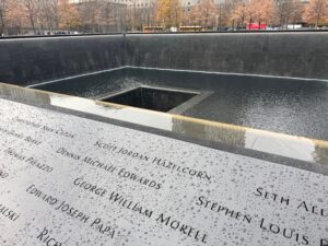 ロウワーNYの一角にある来たかったラーメン店。店員さんも日本人だった。カウンタ―14席・2人掛け6・6人掛けボックス席が2つ。胡椒がふられた茹でもやし・青菜・味玉丸ごと1個・バラロールチャーシュー5枚、麺はワシワシ食感を再現されている、スープは背脂浮く豚骨ベースの化調の効いた醤油スープで抜群!大蒜と辛味も添えられてる。日本で食べたらどうだろうと思うかもしれないが、しっかり日本の二郎系で過去海外で食べたラーメンでベスト3に入る、というか№1かもしれない。店員さん日本人だったからすっかり言い忘れたスープ熱めも麺カタメも何も言わなくても海外に合わせたやり方でなく日本流を通してるのが凄い。タイムズスクエアから地下鉄とバスを乗り継いで来るのは大変だったがその価値あった。この後空港のホテルでしょうもないピザとビール2杯でチップ含めて50ドルだったから、そんなもんと比べるとこっちの方が全然満足、アメリカに居ると価格麻痺してくる、、以下の写真は世界中の人に行ってもらいたいグラウンドゼロ9.11メモリアル記念館、一番肝心な場所は撮影禁止になっているが本当に言葉が出ない、、追悼の意を表します。日本語ガイドのヘッドホンもあるので是非