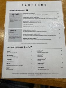 食べた品:TONKOTSU CHASHU JIRO RAMEN 23$・サッポロ生ビール7$ 合計30$税込32.66$ 少ないけどチップ含めて35$置いてきた=5,425円