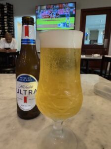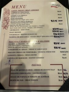 食べた品:Michelob ULTRA 瓶ビール5$・CABRITO AL VINO TINTO 29.95$・赤ワイングラス(カベルネソーヴィニヨン)8$ 合計46.47$チップ15%にして52.91$=8,201円