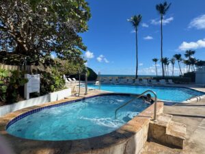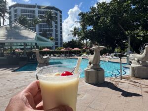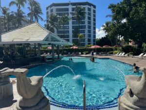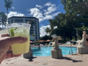 この時はたまにの贅沢でホテルに泊まった、目の前にスタバがあり他の外食よりは安いので2回朝食に利用した。ビックリしたのは下記の写真に写っているように屋外プールに普通にイグアナが泳いできた、、(;’∀’)