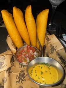 パナマシティ旧市街カスコビエホにある人気レストラン。ちょっと暗い雰囲気で老眼でメニューが良く見えないのが難点。ドラフトビールはなんか物足りない味、セビーチェは甘くないバナナが添えられて上品な量、ほぼ海老!パクチー効いてる、やっぱり酸っぱい、にプラスしてしょっぱい。あのフィージーのココナッツビーチリゾートで食べたセビーチェが忘れられない。サングリアは美味しかった。エンパナーダはサルサソース&マヨ的ソースが付いて熱々!シーフード入り揚げ物。美味いが4つめは流石に飽きてきた。これからメインのタコかハンバーガー頼もうと思ったが腹一杯で断念。頼んだモノがちょっとはずれのものもあったな、非常に人気店なので基本予約が望ましい。以下の写真はパナマといえば!のパナマ運河ミラフローレス閘門