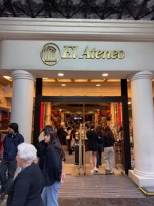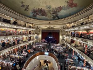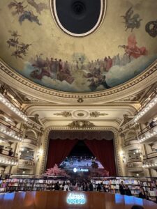 牛肉食べ過ぎていたので勉強の為にアルゼンチンの日本食で非常に高評価の焼鳥屋さんに来てみた。メニューは英語、店員さんも英語とスペイン語のみ。元々のオーナーは日本人らしいし、それらしき人はバックヤードに居た。現地人っぽい焼き方の人は相当教え込まれているのだろう、丁寧に炭で焦げをトングで取りながら焼いているがプリクック式で2段階焼きなのが残念。Draft kira Haruki 330ccはハッピーアワーで1杯6,800ペソ、2杯いただいた。焼鳥は先ずTEBA5,000ペソ、レモンかけ過ぎで酸っぱい、、NANKOTSU5,000ペソはまずまず、塩加減もいい、TSUKUNE5,000ペソは餃子の具みたいな感じでタレが甘過ぎかな、BUTA5,500ペソはタレを塩にしてもらった、うん!豚肉OK。TSUNA MAYO ONIGIRI 6,800ペソは日本のコンビニおにぎりの味。Google検索でちょっと前の見た値段より大幅に値上げされてた。合計40,300ペソ+チップ4,000ペソで約5,000円。お腹あまり減ってなくて良かった、、隣はたい焼き屋さん。以下の写真は世界で2番目に美しい本屋さんと言われるEl Ateneo 元劇場だから綺麗だし、3階には日本の漫画(もちろんスペイン語訳)が多数