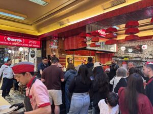 ブエノスアイレスで知らない人はいない位に超有名ピザ屋。手前が立ち食いで1ピースから頼めるエリア。15時で入れ替わり立ち代わりお客さんで溢れ、めちゃくちゃ活気ある店。昼時や夕食時は満員で入店するのも大変らしい。頼んだ生ビールもうまいし、モッツアレラチーズとハムが挟まったボリュームたっぷりの玉ねぎが上に焼かれたピザ、1ピースだがお腹いっぱいになった。オリベスクからすぐの好立地にあるのも人気の要因