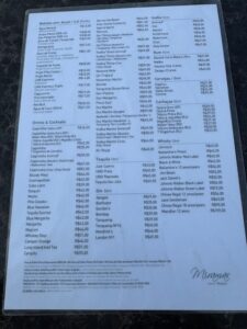 飲んだ品:ピニャコラーダ42レアル・カイピリーニャ36レアル 合計税金チップ含めて85.80レアル=2,525円