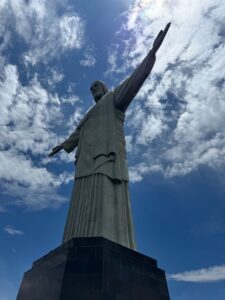 コルコバードの丘の展望台にあるレストラン。バスは不定期に来るので、次のバスが30分後位だと聞いてここに来て注文して出来そうなタイミングでバスが来た。急遽生ビールを缶ビールに変えてもらって持ち帰りにしてもらった。バスの中は飲食出来る雰囲気ではなかったので、1時間後くらいに冷めたものを食べた。以下の写真は憧れのコルコバードのキリスト像