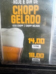食べた品:缶ビール(BRAHMA)14レアル・ホットドッグ28レアル 合計32レアル=935円