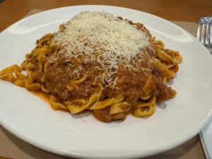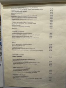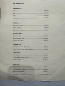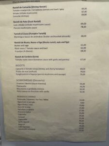 食べた品:ハイネケン17レアル・Proseccoグラス25レアル・Tagliatelle (Bologneseソースで)61.00レアル・Beef (filet mignon) Carpaccio54レアル・グラスワイン赤23レアル 合計180+10%サービス料で198レアル=5,807円