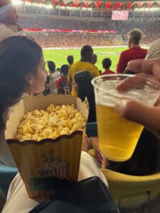 テーブルが5~6つの小さな手作りパスタとワインの高評価レストラン。先ず喉が渇いていたのでハイネケンとプロセッコグラスで。ホームメイドパスタは美味しい、量も結構ある、ボロネーゼソースは酸味強めだけど、波打った手作りパスタがアルデンテでおいしいタレアテッレ、美味しいので追加でビーフカルパッチョ、ルッコラとチーズスライス、外がカリカリの温かいパンまで付いて◎少し水っぽいがなかなか美味しいし、赤ワインメルローとよく合った、ブラジリアンフードに飽きたらイタリアン!満足満足!以下の写真は大興奮のサッカーの聖地マナカランスタジアムで観た地元リオのチームFLAMENGOが勝てばリーグ優勝が決まる試合で1-0で勝った最高の試合と雰囲気!世界で色んなサッカーの試合見たけどやはりブラジル人はクレイジーで凄い!応援の声などの地響きでビールが揺れた、、興奮の輪に入れて感無量