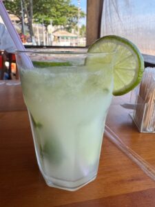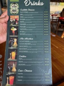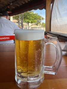 投稿日: 2026年1月24日2026年1月16日 投稿者: KawasakiTakakiBOTEOUIM ALTAS HORAS(コヴェルナドール島のビカビーチ・ブラジル) 場所:リオ国際空港のあるコヴェルナドール島のビカビーチ沿いの何軒もある簡易食事処の一つ おススメ度:★★ 飲んだ品:Chopp BRAHMA13レアル・カイピリーニャレモン18.90レアル 合計チップ含めて35レアル=1,000円 発着便の都合でリオの街に出るのも大変だったので空港近くのBria da Bicaビカビーチに行ってみた。ビールとリオ名物のカイピリーニャレモンを頂くが、やっぱり強い、、甘くて濃い 閲覧(1)