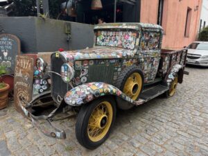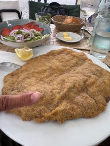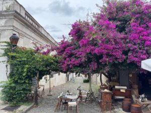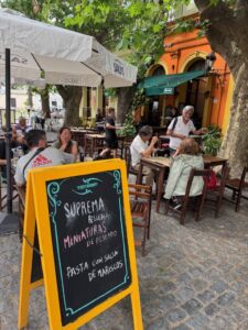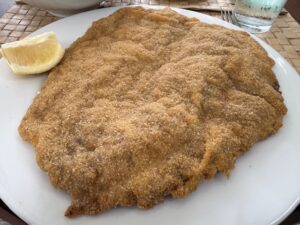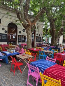 ブエノスアイレス・アルゼンチンからウルグアイのコロニアサクラメントまでフェリーで片道1時間15分で来れたので日帰り旅行してみた。世界遺産の街でもあり安全安心だが物価は高め、ランチでここを利用、テラス席で混んでなかなか店員さんが来てくれない。小さなビールは売り切れ、カツレツも小さなサイズは売り切れ、、店員さんは英語パーフェクト。白ワインはスッキリほんの少し甘みもあって美味しかった。名物牛カツレツに付くサイドはサラダを選択したが、これも量たっぷり、だけどドレッシングも無し、頼めばあったのかな?Milanesa(ミラノ風牛カツレツ)はとてつもないデカさ!薄く引き伸ばしたビーフだが想像を超える大きさ、レモンを絞ってのみだが、辛子醤油かウスターソースが欲しい