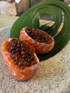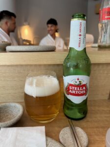 食べた品:STELLA ARTOIS 6,300リラx2杯・ランチコースのハンドロール6巻30,500リラ・La Posta de Blanco白ワイングラス7,800リラ・GUNKANSからTrucha,Ikura12,200リラ 合計5,050リラ=5,463円+チップ