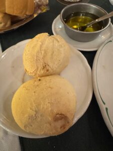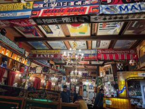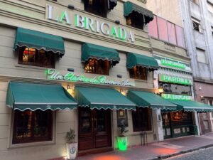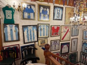 サンテルモ地区にあるサッカーファンの集まるステーキハウス。オリーブオイルに硬いパンとクラッカーが先ず来た、後でボトルワインを頼んだら熱々のパン2個持って来た、料金に入っているのかよくわからない、店員さんは全く英語が通じないし、ボトルワイン頼むまで感じ悪かった(笑)他のステーキハウスもそうだったがグラスワインが異常に高い、残ったら持ち帰りOKという事で赤ワインのマルベックの一番安いのは教えてもらい注文(結果グラスワインより安くていいが、やっぱり値段なり、正直マルベックの最低)ステーキはスプーンでも切れる柔らかい肉をウリにしていて店員さんがスプーンで切るがギリギリ音を立てて凄い力を入れていた(笑)笑いを堪えるのが大変だった。想像通り硬い!!塩味が薄くて追加で塩をかけた、感動も無し、コリャダメだ。でもこんな肉でも脂身と筋を噛み締めているといい味だわ、まぁ最後口から出すけど、、これまでのステーキハウスのなかでは一番下。頼んだモノが悪かったのかも!?ただここは南米サッカーの博物館とも言えるコレクションが無料で観られるのでサッカーファンなら是非