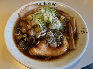 ②も長くなってきたので③を立ち上げ、原点のチャーシューめんをネギ増しでいただく、ここんちの葱はシャキシャキ食感で好き、いつからか?ベースの醤油がキッコーマンからヤマサの濃口醤油に変わっていた。申し訳ないが高血圧ほ人には厳禁の血圧上がる塩分しょっぱさ!これがハマる人にはハマる富山ブラック。ブラックペッパーが一番合うラーメンでもある