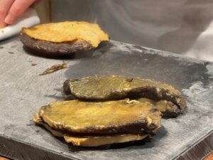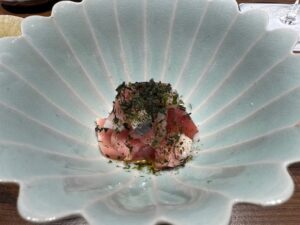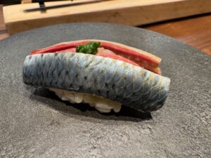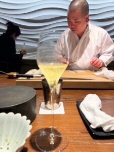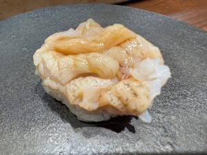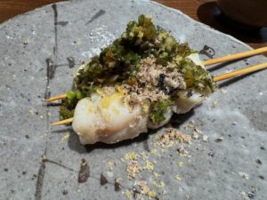 新発田店は行った事があるが(鮨 登喜和で検索すると出ます)新潟に出来てからは初めて。結論さすがです!なかなかいいお値段になるがこれを関東や福岡で食べたら1.5倍~2倍にはなるだろうな!?お粥(今回は河豚粥)から始まるのも斬新、印象に残ってるのはトラフグの巨大白子!これほどの大きさは初めて、ただサクラエビはもっと少量の方が白子を味わえたかな?河豚の身は串に刺して炭を当て茎も含めたたっぷりの刻みセリのトッピング、あ~記事書きながらよだれ出る。煮鮑も巨大で出汁葛合わせて噛めば噛むほどに味わい深し、五泉の〇〇さんが育てた蓮根の寿司も珍しいし美味かった。大好物の鮮度命のイワシ握りも最後におかわりしちゃった!サクラ鱒もこの時期ならでは、つぶ貝も工夫でこんなにコリコリ食感を際立たせる事が出来るのか!日本酒も酸味ありのフルーティー好みのものが多くついつい飲み過ぎてしまう。こりゃ自分へのご褒美や素敵な人への接待などで、県外客含めて予約困難店というのも頷ける
