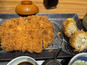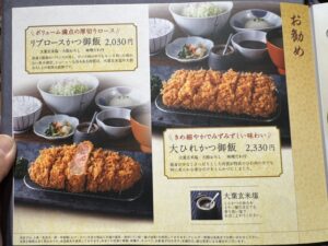 今回食べた品:リブロースかつ御飯2,030円+キャベツメンチかつ300円追加