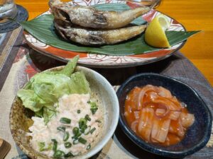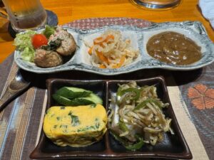 投稿日: 2026年4月16日2026年4月9日 投稿者: KawasakiTakakiおばんざい家 結(むすび)② 場所:新潟市秋葉区中野4丁目7-13(旬菜跡地)JR荻川駅から徒歩5分 日・月曜定休、17:30~23:00。靴を脱いであがる民家風。カウンター4席・テーブル4名x2・個室4名1テーブル。美人親娘が運営 長くなってきたので②立ち上げ。この日は早いスタートだったので19:30までに頼めるお得な晩酌セット1,300円から牛スジカレーと切干し大根とツクネバーグを選択、少量ずつと生ビールといただく。目光も大きい、ついつい飲み過ぎた 閲覧(1)