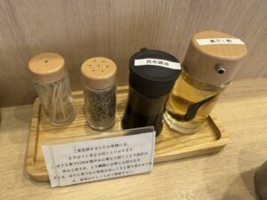 先ずお茶と僅かな柚子胡椒が付いた小皿がレンゲとともに運ばれる。手作り変形どんぶりに美味しい海苔1枚・柚子片・飾り麩・スプラウト・刻み紫玉ねぎ・斜めカットされた葱・美味しい半熟味玉半分・極薄切り低温調理チャーシュー2枚、低加水寄り細麺、鯛出汁の美味しい塩スープ。トッピングは全て丁寧で間違いない!和食の技、飲み干す上品で繊細なスープ。美味しいけど量は足りない感じ。これ麺よりご飯の方が合うと思う