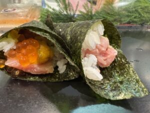 何度か来てるが記事が見当たらない。この日は4次会でひとり利用。散々飲んだ後だったのでよく覚えてないが、金曜だった事もあるが真夜中2時過ぎなのにほぼ満席、3:30までやってるから凄い!新潟古町の大人気の〆処。緑茶ハイx2杯、しまあじ320円・セレブ巻(うに・トロ・いくらの海苔巻)440円・中トロ420円・納豆巻260円・トロタク細巻1,300円などを注文したらしい(;’∀’)あまり期待してなかったけど、海苔がちゃんと美味しいのと納豆巻が納豆を何回も練って叩いた強い味で過去の納豆巻の中で秀逸!トロタクも沢庵がコリコリでトロも甘くてうまかった覚えが、、実はなんとなく寄った覚えはあったが翌日携帯に写真を撮ってたのを見て、あれからこんなに食べたのかぁ~と猛省