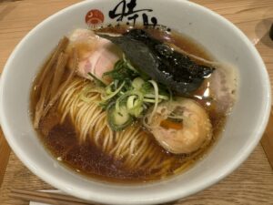 行列覚悟で行ったが意外にも即入店。食べた基本の中華蕎麦は海苔1枚・シャキシャキ輪切りねぎ・コリコリ細メンマ・八幡巻き(鶏牛蒡ロール巻き)1枚・低温調理チャーシュー1枚、綺麗に揃えられた国産小麦の自家製ツルツルストレート細麺、スープは鶏ガラ系ベースの淡麗醤油スープ。飲み干せる優しいスープだが出汁が弱い感じ。期待が大き過ぎたのか?新潟でも無化調淡麗系を直近で何軒か食べてるが新潟のレベルが上がってるって事かな。ただ新潟より安価かも
