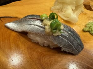 食べた品:なまこ酢・平目の昆布〆・トロタク・鰯握り・しまあじ握り・サザエ握りなどなど