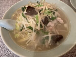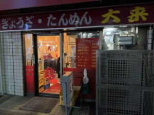 横浜野毛エリアで3軒ハシゴした後知人のスナックへ行ってると私が行きたい店リストに書いてあった大来が閉店ギリギリだけどまだやっててくれるってと仲間が先に行って、急遽最後の店として駆けつける。この店は「人生最高のレストラン」というTV番組で谷原章介が紹介して行きたい店メモに書かれてた。先ず餃子をアテに瓶ビール(まだ飲むか)干しエビも入ってる?皮も美味しい~そしてお待ちかねのタンメン!もやし・木耳・韮・青菜・白菜細切り・豚肉・にんにく、麺も独特な硬茹で低加水中太縮れ麺、ニンニク味のあっさり塩スープ、野菜タップリだしニンニクガツンだがあっさりスッキリスープはクセになる、またすぐ食べたい。こういう町中華好きだな