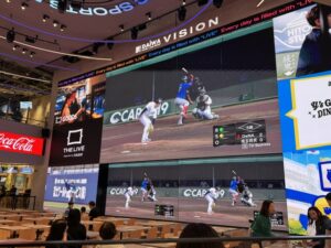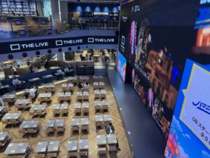 ザ・ライブという大型スクリーンが設置され周りに飲食店などが多数ありモバイルオーダー出来る場所