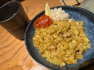 追加はヤゲン軟骨・皮・ソリレス・アスパラ・フルーツトマト、私はフライライス、仲間はそぼろ丼。やはり里葉亭同様に焼鳥はもちろん美味しいがそこまで鶏にこだわってるわけじゃなく、一連のコースとして楽しいし満足度高い、スナップエンドウはコンソメの様な味がしたからパウダーをかけてると思う、パリッパリに揚げた手羽先も焼鳥屋では焼きでくるがここは揚げる、皮は里葉亭流の弾力ある系、元々皮はパリパリ系が好きだけどここんちのはOK、つくね・砂肝や大好物ソリレスも美味かった~削り立てのパルメジャンチーズが合うミニトマト、そして〆で食べた名物フライライスがスパイスカレーで秀逸なお味だった胃に優しい鶏スープも。里葉亭も検索してみてね!
